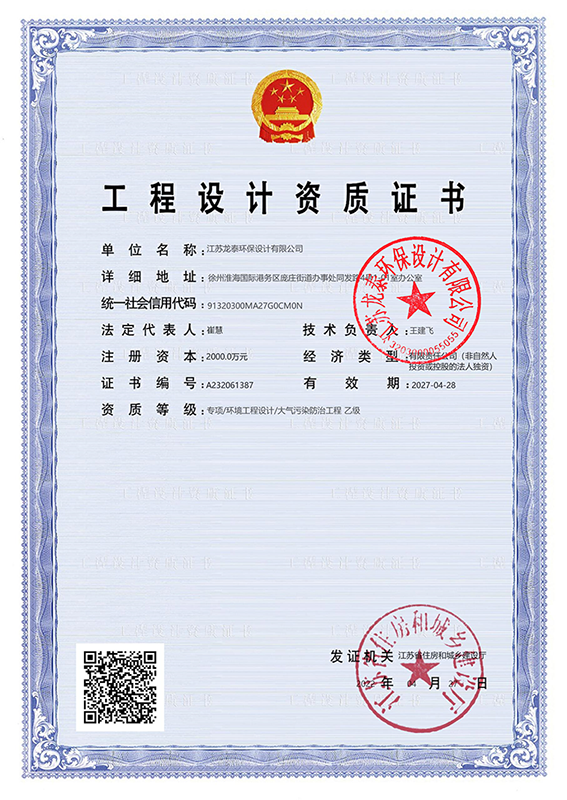 公司先后獲得工業廢氣治理行業十大影響力品牌、大氣污染防治工程設計資質、